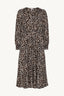 Leopard-print dress crafted from soft viscose. Designed with button closure at the front, elastic waist for a flattering fit, and smocked cuffs. The flowing skirt creates elegant movement -perfect for both everyday wear and evening occasions.