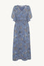 A graceful floral dress crafted from 100% viscose with a smooth viscose lining for optimal comfort. Designed in a regular fit, it features a flattering V-neckline, airy butterfly sleeves, and a smocked waist that accentuates the figure. The flowing silhouette and delicate floral pattern in soft blue tones make it an ideal choice for both everyday wear and special occasions.