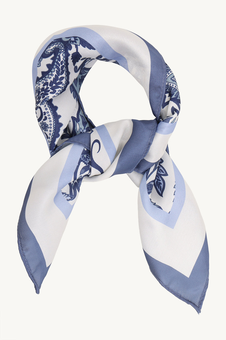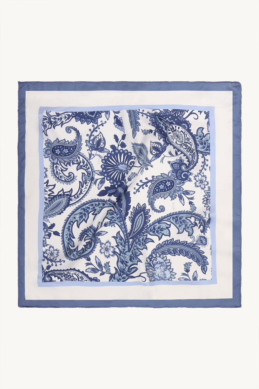 Square scarf in 100% polyester with an elegant paisley print. Features a soft, silky finish and a small metal logo detail at the corner.
