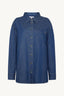 Løstsiddende denimskjorte med krave, knaplukning foran og brystlomme i venstre side. Skjorten har afrundet kant forneden og er længere bagpå.
